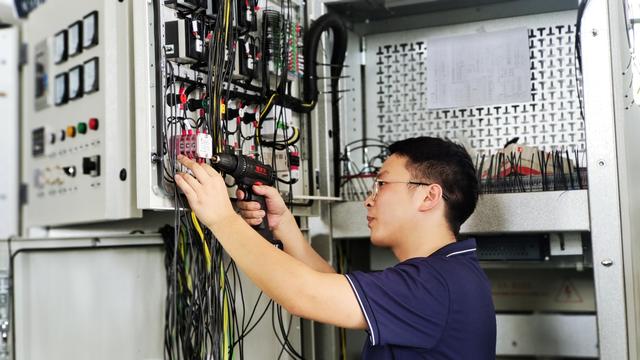 (图片说明:河南瑞博电气有限公司一技术员正在组装电气设备)