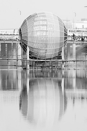 3月30日,在地处中国南北地理分界线上的江苏淮安,红蓝渐变的南北分界线标志物成为古淮河上一道亮丽的风景。经过8个月的建设,位于淮安古淮河上的南北分界线标志物已基本完工,进入内部装饰阶段,有望在“五一”前向市民开放。标志物以球形为母体,分为南北两半球,北侧为渐变冷色调,南侧为渐变暖色调,喻意地球上的南北气候特征。行人可从球中穿过,感受跨越南北气候带的感观变化。新华社发