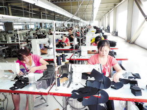 扶沟惠丰鞋业制鞋车间一角 该项目总投资1.6亿元今年计划投资0.5亿元。1至5月份已完成投资2000万元,目前7条生产线已试生产,已安装制鞋设备440台,招收工人486人。