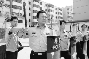 6月13日上午,项城市法院法警大队法警正在操场上练习盾牌操。为庆祝建国60周年,参加我市政法系统举办的“司法警察迎国庆大阅兵”活动,近来,该院法警利用工作之余,苦练队形、擒敌拳、盾牌操等技能。(记者 张猛 摄)
