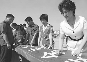 近日,郸城县世纪广场举行了数万人参加的“安全生产,人人有责”签名活动,拉开了2009年安全生产月活动的序幕。图为签名仪式现场。(记者 卢好亮 摄)