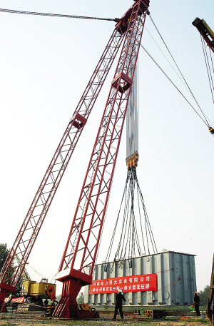 6月23日,重达131吨的淮阳500千伏输变电建设项目变电设备由重庆运抵我市。至此,被誉为“黄金水道”的沙颍河河南段真正实现了常年通航。(记者 王映 摄)