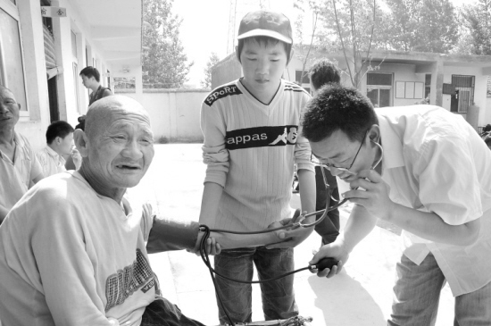 赵安涛以前患有心脏病,得到了爱心义工和社会爱心人士的救助。康复后,他也加入爱心义工队伍,用自己的爱心帮助需要关爱的人。图为赵安涛和爱心义工一起到福利院为老人和残障人献爱心。 (记者 孙安平 摄)