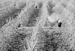 1月5日,海南省琼海市嘉积镇的一名农民在冬瓜田里管理瓜苗。新华社发