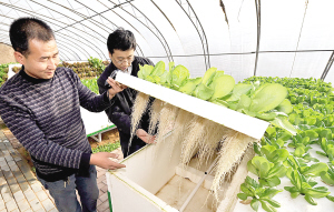1月5日,两名农业科技人员正在仔细观察无土栽培蔬菜的生长情况。目前,宁夏全区设施农业总面积增加到80余万亩,70%的设施蔬菜销往其他省区市,甚至远销中亚。(新华社发)