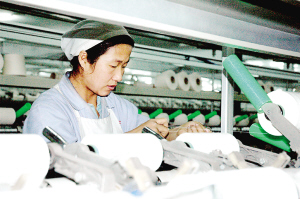扶沟县是全国第二大产棉县、优质棉生产出口基地县、全省纺织工业基地。为打造培植“优质棉基地”这张“全国名片”,该县不断优化经济发展环境,加大招商引资力度,促进了棉纺产业的快速发展,继而带动了棉花相关产业的不断发展,从而催生出一大批涉棉企业。图为纺织工人在车间认真工作。