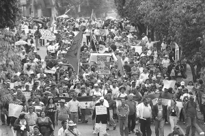 1月7日,在洪都拉斯首都特古西加尔巴,被罢免总统塞拉亚的支持者举行大规模游行示威活动。当日,特古西加尔巴再次爆发大规模游行示威,数千名塞拉亚的追随者身穿印有塞拉亚名字的红衫,举着要求其复职的条幅,在市区主要街道上示威,要求严惩军事政变的参与者。 新华社发
