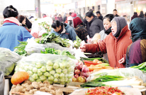 昨日,市民在农贸市场选购新鲜蔬菜。近日,为稳定蔬菜市场供应,减少寒潮对菜价的影响,各地提前启动蔬菜应急预案,缓解寒潮天气对居民生活的影响。新华社发