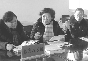 李桂梅(中)是一位资深的教育工作者,她数十年如一日默默在教育战线上奉献着、探索着。她在教学中勇于实践,敢于创新,曾连续12次获得“高中教学质量奖”, 连续3年获得“高中教学优秀成果奖”,2次被省、市教育部门评为英语教学优质课教师,发表了既有理论深度又有实用价值的教学论文50余篇,多篇文章被评为河南省中学教师交流论文一等奖。图为李桂梅和同事一起探讨业务。 (王海东 摄)
