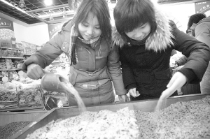 昨日是腊月初七,不少市民开始为腊八节备料。图为记者在市区人民路一超市看到许多市民在选购腊八米。(记者 王映 摄)