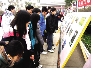 近日,郸城一高联合郸城县摄影家协会举办了新年摄影作品展,共展出构思精巧、画面优美的精品力作上百幅,摄影家通过镜头展现了祖国大好河山和郸城建设成就,陶冶了师生情操,提高了师生审美情趣。图为师生在聚精会神欣赏参展摄影作品。(王雪涛 摄)