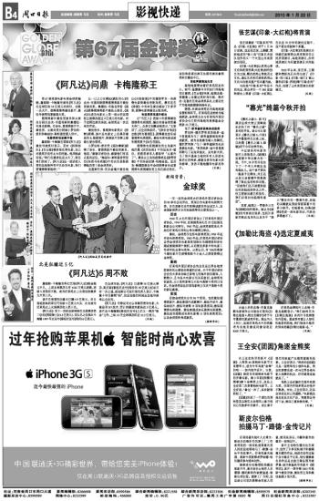 在全球市场,《阿凡达》已获得16亿美元票房,距打破《泰坦尼克号》保持的18亿美元纪录只有一步之遥。福克斯公司发行部负责人表示,卡梅隆十年仅磨两“剑”,但其创造的利润是其他导演难以企及的。