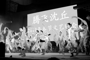 1月20日晚,由县委宣传部、县广电局、县文化局联合举办的“腾飞沈丘”2010年春节联欢晚会在县综合健身馆举行。此次晚会参演演员500余名,节目近20个,特邀河南卫视《梨园春》栏目3名小擂主及市文艺团体参与演出。(董国俊 摄)