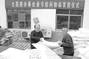 临近春节,市经济开发区太昊路办事处对辖区内的特困户、复员军人、五保户等优抚对象进行慰问,为他们送去了米、面、棉被等生活用品。