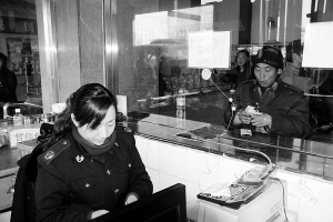 ▲2月1日下午,在周口中心车站售票厅,一位旅客正在购买车票。