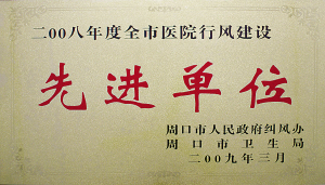 “宝剑锋自磨砺出,梅花香自苦寒来”。通过全院医护人员的共同努力,沈丘县人民医院在2009年先后被河南省卫生厅和省工会授予“三优一满意”活动先进单位、“职工书屋”,被市卫生局、市文明办授予“文明服务示范窗口”、“行风建设先进单位”、“十佳医院”、“医疗质量万里行先进单位”等荣誉称号。