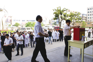 为了贯彻落实河南省卫生厅“医疗质量万里行”活动的精神,沈丘县人民医院注重对护理人员的急救知识及技术培训。该院护理部首先从业务素质抓起,按年初制定的“三基”培训计划组织实施,坚持每季度进行实践操作竞赛和理论考试竞赛。各科室每月组织一次业务学习,并严格考核,要求人人过关,成绩纳入个人档案,作为对个人考评的客观依据,形成一种比、学、赶、帮的氛围。在全市“质量万里行”活动市技术比武中,该院分别获得静脉输液、三人心肺复苏三等奖。