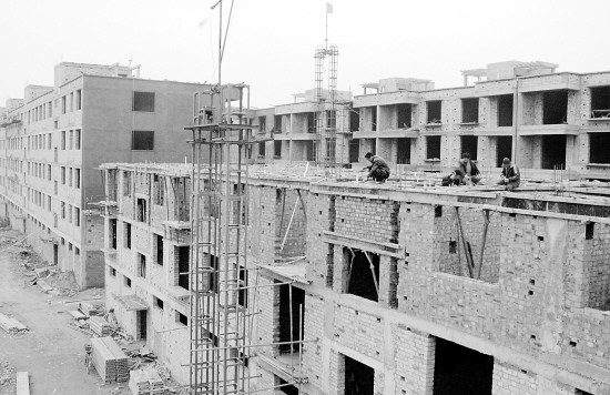 近年来,沈丘县老城镇西关行政村通过市场化的运作模式,筹集建设资金,用于新农村建设,以改善村民居住环境,提高村庄品位。图为该村新农村建设工地现场。(记者 李寒 摄)