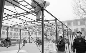 青海玉树地震灾区加紧建设活动板房 4月25日,工人们在结古镇红旗小学搭建板房。目前,多家单位已经在青海玉树地震灾区启动板房建造计划,这些板房将在1个月内陆续搭建完成并投入使用。据了解,落成的板房至少将在灾区使用3年。 新华社发