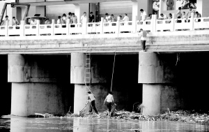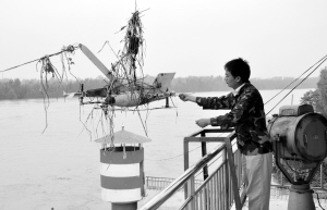 ②沙颍河管理处组织突击队员对大闸进行全面清理,确保河道通畅。(董建红 摄)