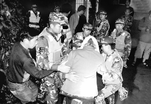 ①武警官兵及时转移受灾群众。(记者 沈湛 摄)