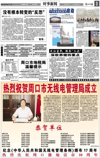 热烈祝贺周口市无线电管理局成立