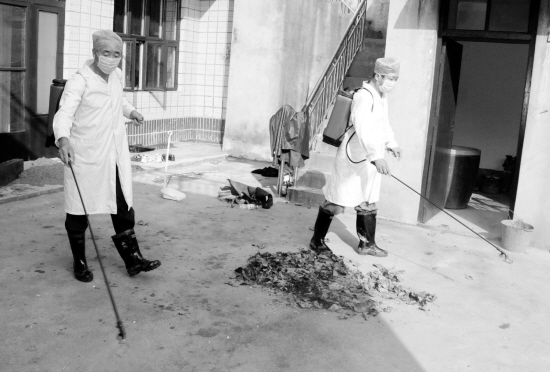 为确保水灾过后无疫情,市经济开发区迅速启动防疫机制,对受灾的黄滩村进行全方位消毒防疫,切实防止各种传染病和突发公共卫生事件发生。图为防疫人员对黄滩村进行消毒防疫。(记者 李寒 摄)