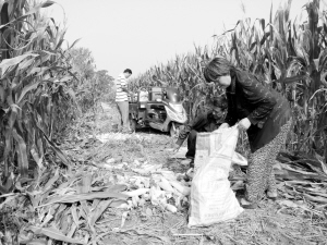 昨日,几名农民在田间收玉米。金秋9月,沈丘县100多万亩秋作物喜获丰收,玉米种植80多万亩,预计玉米产量会再创新高,亩产可突破500公斤。