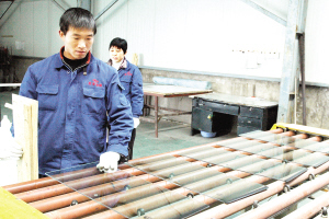 今年以来,鹿邑县突出“工业主导、项目主线、招商主措、统筹主调”的工作重点,以项目建设为总抓手,抓项目带产业,上项目促开发,靠项目调结构,用项目扩总量,取得了明显成效。图为该县一企业的工人正在紧张施工。(记者 李寒 摄)
