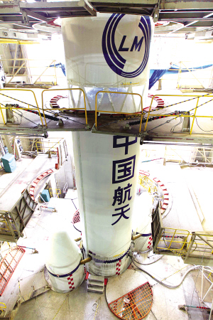 9月30日,在发射架内的长征三号丙火箭正在加注推进剂。9月30日9时,托举“嫦娥二号”的长征三号丙火箭进行常规燃料加注,“嫦娥二号”发射进入倒计时。 新华社记者 李刚 摄