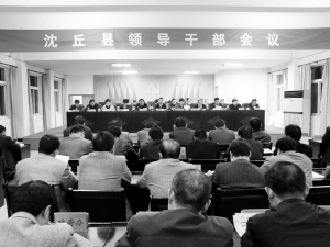 本报讯 (记者 韦伟 实习生 张煜贞 张冰)10月26日晚,沈丘县召开全县领导干部会议,传达贯彻十七届五中全会精神。会议强调,全县各级干部要把学习十七届五中全会精神作为当前最重要的政治任务,特别是领导干部要充分发挥带头带动作用,学习好、领会好、贯彻好全会精神,切实把思想和行动统一到全会公报和全县具体工作要求和部署上来,紧密结合实际抓落实,进一步推进全县经济社会又好又快发展。