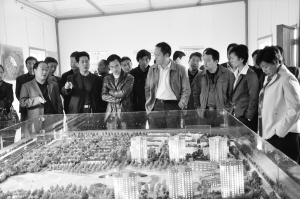 最近,项城市观摩团在沈丘观看和谐新村建设模型。自全市新农村现场会在沈丘召开后,县委、县政府及时落实会议精神,强力推进工程进度,严格管理工程质量,开展“清洁家园”行动,紧紧围绕“生产发展、生活宽裕、乡风文明、村容整洁、管理民主”的方针,结合实际,重点整治脏、乱、差现象,新农村建设取得了明显成效。沈丘县按照“典型引路、以点带面、联运建设”的思路,集中人力、财力、物力,先后建设了老城西关村等12个试点村,改变了农村以往的落后面貌,上级领导及各县(市、区)负责人多次到沈丘参观学习。(韦 伟 张煜贞 摄)