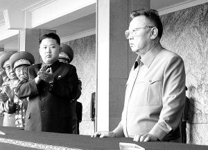 图为获得一等奖的作品《金正日、金正恩同台阅兵》。 2010年10月10日,朝鲜在平壤金日成广场举行盛大阅兵式,庆祝朝鲜劳动党成立65周年。这是朝鲜最高领导人金正日、朝鲜劳动党中央军事委员会副委员长金正恩等朝鲜党和国家领导人在阅兵式开始前走上主席台。 新华社记者 姚大伟 摄