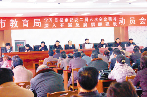 本报讯 2月22日,市教育局召开全市教育系统党风廉政建设动员会,认真学习贯彻市纪委二届六次全会精神,全面部署教育系统党风廉政建设和反腐败工作。市教育局领导班子成员、局机关全体职工干部、局直各学校校长、各县(市、区)教体局局长和纪检组长参加了会议。