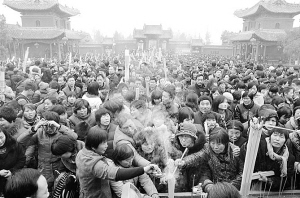 自淮阳朝祖会开幕后,四面八方的游客蜂拥而来,祭拜人祖伏羲,祈祷人寿年丰。(杜忠勇 闫俊领 摄)