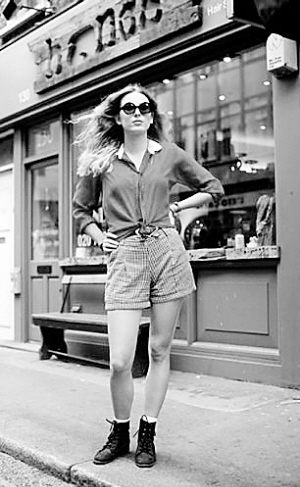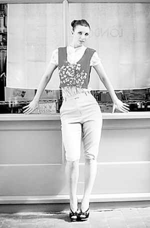 伞形的五分裤其实和A字裙的功效一样,可以在视觉上拉长双腿的效果。细格纹印花跟上了复古浪潮,亮眼的白领红衬衣让整体复古味儿更浓。 |