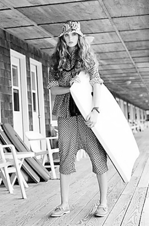 去海边沙滩,五分裤的优点就更加显现,裤腿的长度有适度的防晒功能和方便运动的版型。上衣配套的灰色波点衬衣甜而不腻的低调气质非常讨巧。帽子和亮色鞋子点亮整体。 |