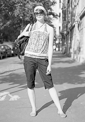 图案T恤叠穿小背心让简单的夏季服装穿出混搭层次感。黑色运动五分裤和小背心的颜色上下呼应,穿这样一身在假日出游,舒服方便又好看。 |