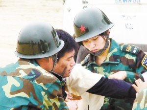 西华县人武部以未来参战支前任务为牵引,切实抓好民兵应急应战课目训练,努力提高民兵队伍的战斗力及遂行多样化军事任务能力。图为民兵队员正在进行实战背景下的应急救护训练。(李自强 摄)