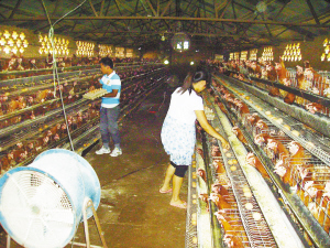 商水县平店乡袁庄村村民袁规划、秦蓓蓓夫妇正在他们家的蛋鸡养殖场忙碌。近年来,该乡积极引导农民因地制宜调整经济结构,大力发展以蛋鸡、肉牛、生猪为主的特色养殖业,很多农户走上了致富之路。