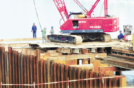 昨日清晨,八一路大桥工地上的工人开始了新一天的工作。该桥全长804米,桥面宽度40米,计划施工工期18个月。据介绍,该桥桥梁造型以“龙都周口”为主题,建好后不但能成为一座“民心桥”,还将成为沙颍河上一座蕴涵中原文化内涵的标志性建筑。(记者 沈湛 摄)