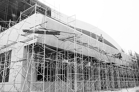近年来,项城市坚持以人为本,紧抓民生建设不放松,努力营造良好的人居环境,受到市民一致好评。图为正在施工中的项城市体育馆。 (赵献伟 摄)
