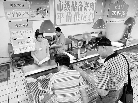厦门:“平价肉”受市民青睐 8月17日,厦门市民在一超市购买储备冻肉。从8月15日开始,福建省厦门市在岛内5个供应点投放市级储备冻肉,价格比同品相冻肉零售价格优惠15%,比鲜肉便宜至少25%,受到了部分市民的青睐。 新华社发