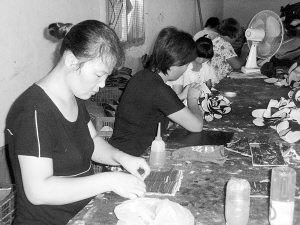 三所楼村的留守妇女正在村里一家制鞋厂工作。近两年来,商水县舒庄乡三所楼村党支部、村委会积极鼓励和支持外出务工人员返乡创业。目前,该村已创办制衣厂、制鞋厂、玩具厂等民营企业6家,安排村里300多名留守妇女进厂打工。(记者 岳建辉 通讯员 乔连军 摄)