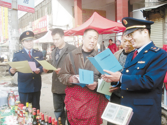 太康县工商局积极开展“创建无传销社区”活动,努力营造全社会识别传销、拒绝传销、抵制传销的良好氛围。图为该局执法人员正在向群众发放宣传手册。(王青俊 杨亚 摄)