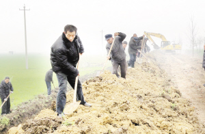 昨天,商水县舒庄乡群众一起挖沟修路。近来,该乡迅速掀起冬季农田基本建设热潮,每天出动大型挖沟机械12台,出动劳力3000多人,新挖沟渠6条,疏通沟渠16条,新修道路6条,整修道路14条,新打机井56眼,修复机井116眼,修建桥涵54座。(乔连军 摄)