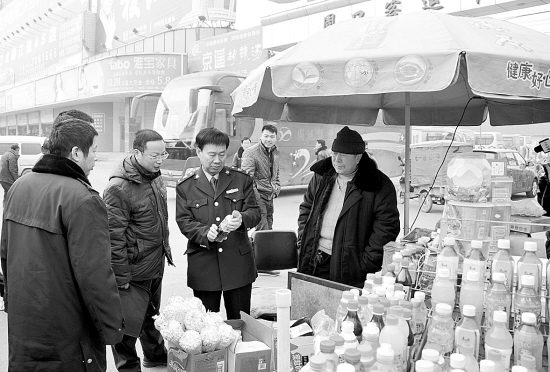 市工商局日前开展了围绕学校医院、交通枢纽、农贸市场、旅游景区、商场超市 “五个周边”市场集中整治中原红盾行动,突出查处取缔无证无照、食品安全、虚假广告、传销等,集中查处各类市场主体违法违规经营行为,努力营造放心消费、安心消费的市场环境。(王映 杨华伟 摄)