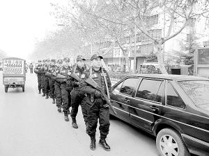 为确保全市人民群众过一个平安、欢乐、祥和的新春佳节,周口市公安机关全体公安民警忠实履行职责,坚守维护社会治安一线,全力做好节日期间安保工作,有力地维护了社会治安,震慑了犯罪,受到了社会各界及全市广大人民群众的高度赞扬。图为大年初一周口市公安局特警支队民警在城区主要街道和重点区域开展武装巡逻。