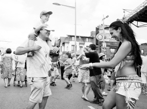 当日,为期两天的第八届加拿大多伦多街头莎莎舞狂欢节在市区圣克莱尔大街一段封闭的街道上进行,众多喜爱拉丁风格莎莎舞的爱好者齐聚街头,欢度周末。(新华社 发)