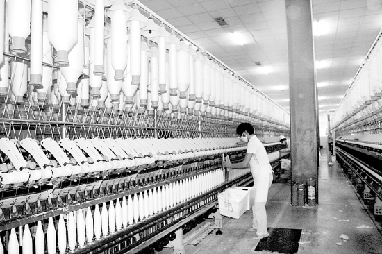 商水县坚持以项目建设为主线,狠抓工业经济支撑点,在招商引资和项目建设工作中呈现出较好的态势。图为该县产业集聚区内纺织女工正在忙碌的场景。( 陈东辉 摄)